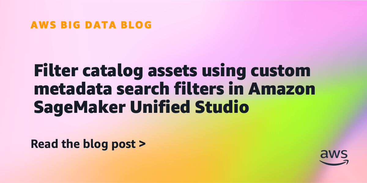 Custom metadata search filters in Amazon SageMaker Unified Studio give data consumers the ability to find exact assets using structured filters based on their organization’s own metadata fields. By combining multiple filters across custom metadata forms, asset names, descriptions, and date ranges, data consumers can construct precise queries that surface the right datasets without scanning through broad search results. Filter persistence across browser sessions further streamlines repeated discovery workflows.