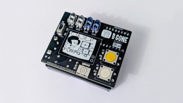 “Imagine a dystopian future, filled with monitors, marketing at us everywhere we go. Sadly, we are living that future now,” Altman says of the original origins of his soldering kit design. “This kit is super useful, not only for yourself, but for everyone! And while maybe that’s dramatic, the TV-B-Gone is perfect for playing pranks on your friends during the Super Bowl or getting some peace and quiet during dinner.”